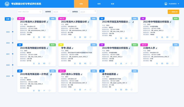 我司为天津市教育招生考试院量身定制了一款考试数据智能分析与综合评价处理服务平台,采用人工智能与大数据分析算法,结合专家提供的数据分析模型,支持海量考试数据的高效分析与报告生成。系统用户涵盖市区各级教育管理部门、学校及学生,每年涉及约650个部门与26万名学生。后台管理员负责基础数据整理、分析报告生成和发布,而各级用户可根据权限需求在线预览与下载分析报告。系统通过标准化的数据集中处理与强交互可视化报告,推动教育质量评价更加科学、精准,促进教育公平与提升教育质量。该系统以“用数据决策、用数据管理”为核心理念,助力教育管理者更加高效地进行教育质量综合评价。